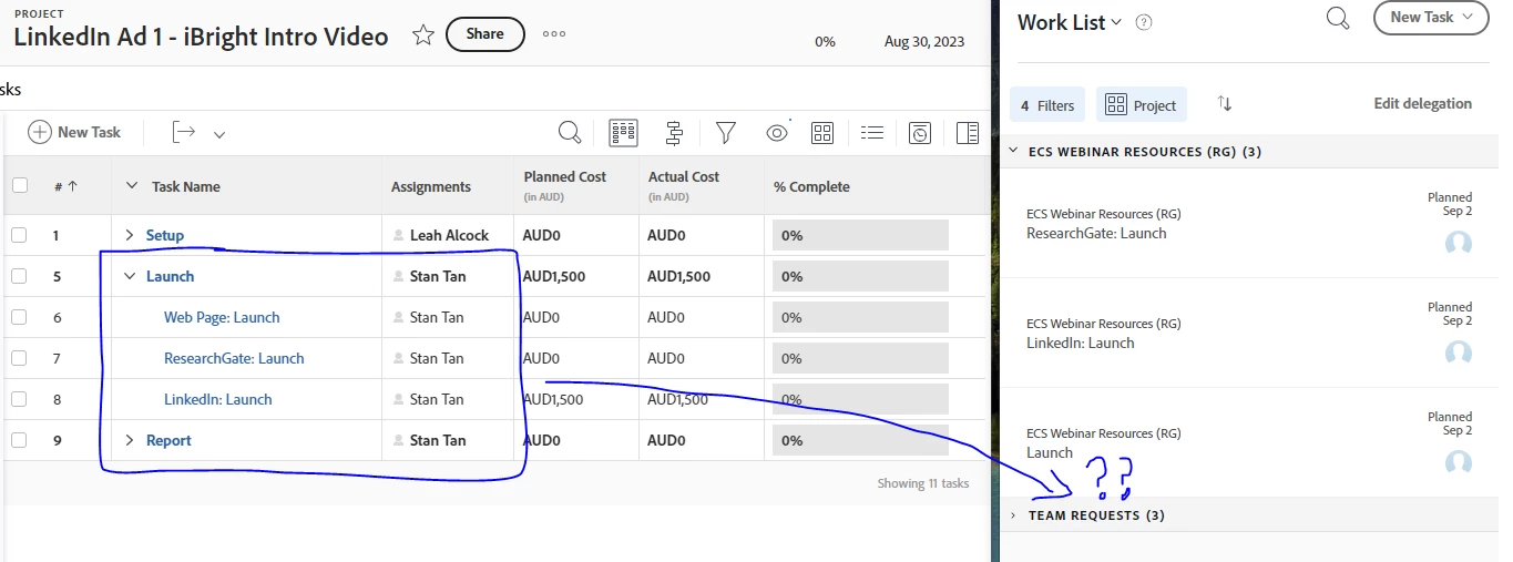 Attached is a screenshot of 3 Tasks under a Project that isn't showing up.