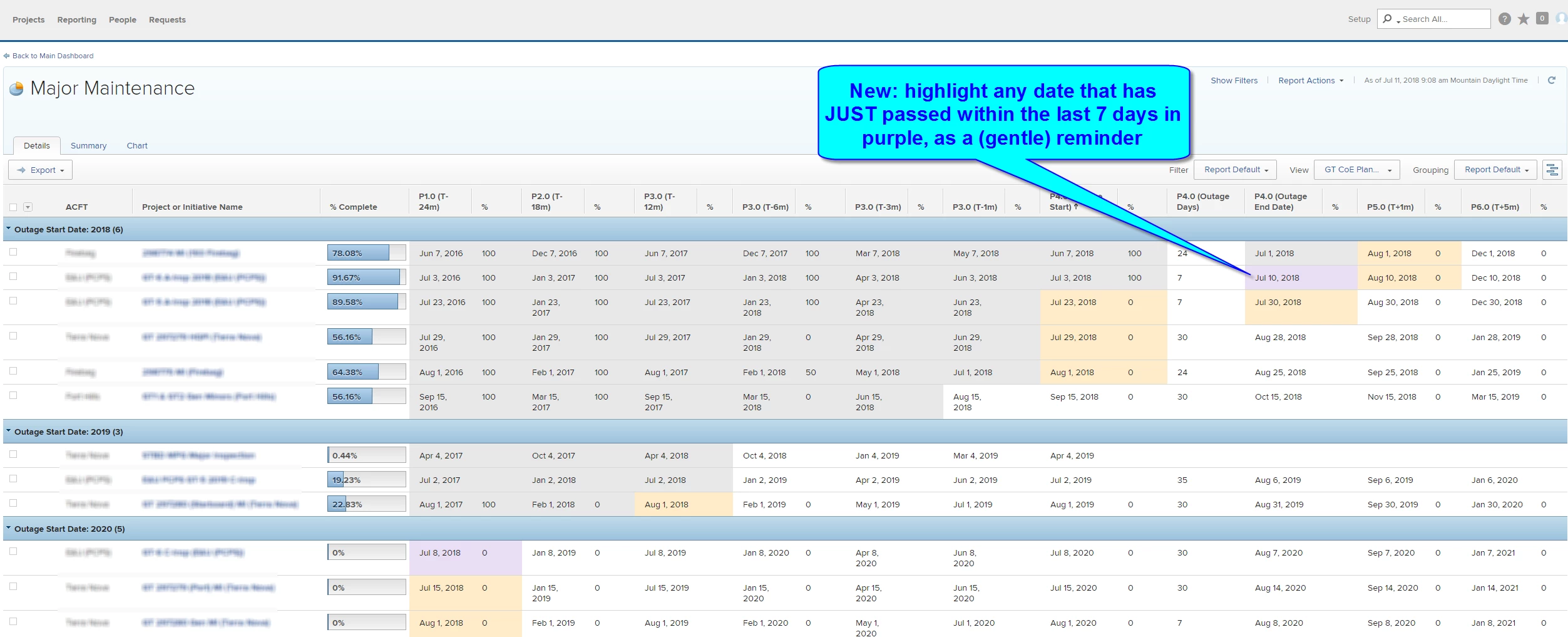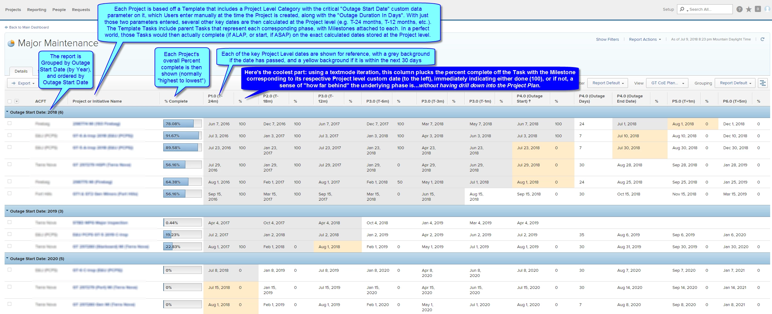 At Last! A Project View that tracks Percent Complete by Phase