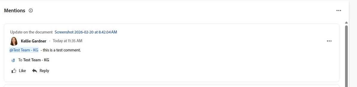 When you @mention a team in the Updates section of a project, does the comment appear in the @mention widget? I tested this, and the comment only shows up in my notifications.
