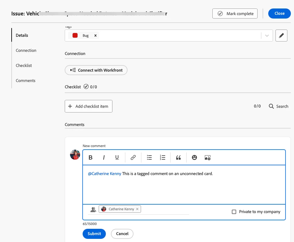 This functionality is important because the current behavior is misleading. The person adding the comment and tagging another user assumes the tagged user will be notified, since that functionality exists in all other areas of Workfront, including on connected cards.