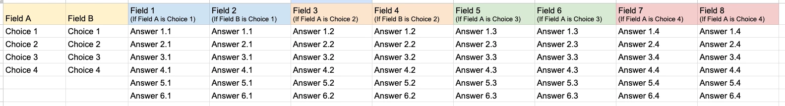2) However, fields 1-8 only appear based on the field A and B answers.