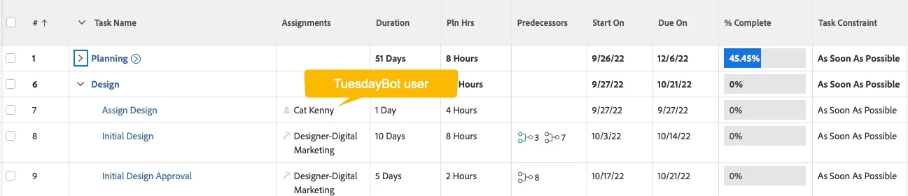 We would prefer to achieve this without having to add a task prior to “assign design”