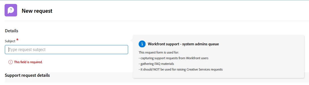 Need to know how to add an instruction/tooltip for the subject field in a request queue. Mainly to instruct the user to follow a specific nomenclature for the Subject.