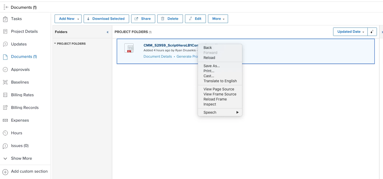Working within a WF Project under the documents section of either the task or the project itself (I am working in the New Experience) I use to be able to right click on an uploaded document and you'd get the option of copying a link to the document. That option is no longer available: Sometimes we don't create a proof, especially if I am just sending to legal and they need to sign or edit and send back to client. Regardless I'd like the option to share a link to the document because that is helpful in keeping the project going. Option use to be there now it's not. Thanks for your help. Ellen