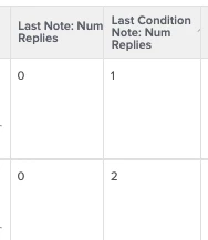 The closest we've gotten so far was using Last Note: Num Replies & Last Condition Note: Num Replies but this isn't a total for the week, and isn't consistent in pulling the true number of either updates or replies.