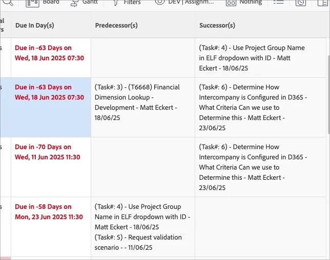 Can you report on upcoming Tasks (Successors)?