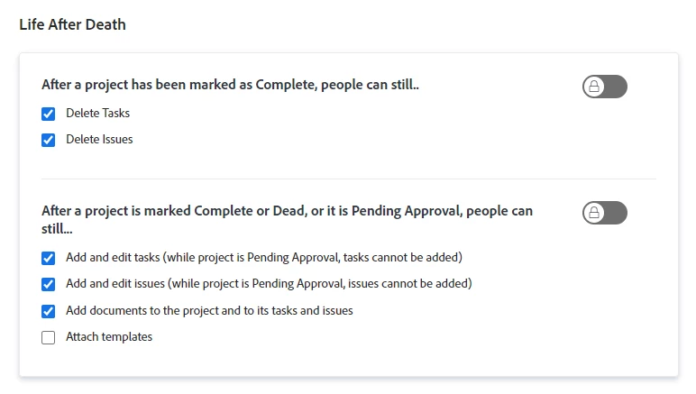 It could also be the life after death type settings.  It looks like the project is Complete, so it may become locked.  Check your Setup > Project Preferences > Projects > After a project is marked Complete or Dead, or it is Pending Approval, people can still... > confirm what selections are/aren't checked.