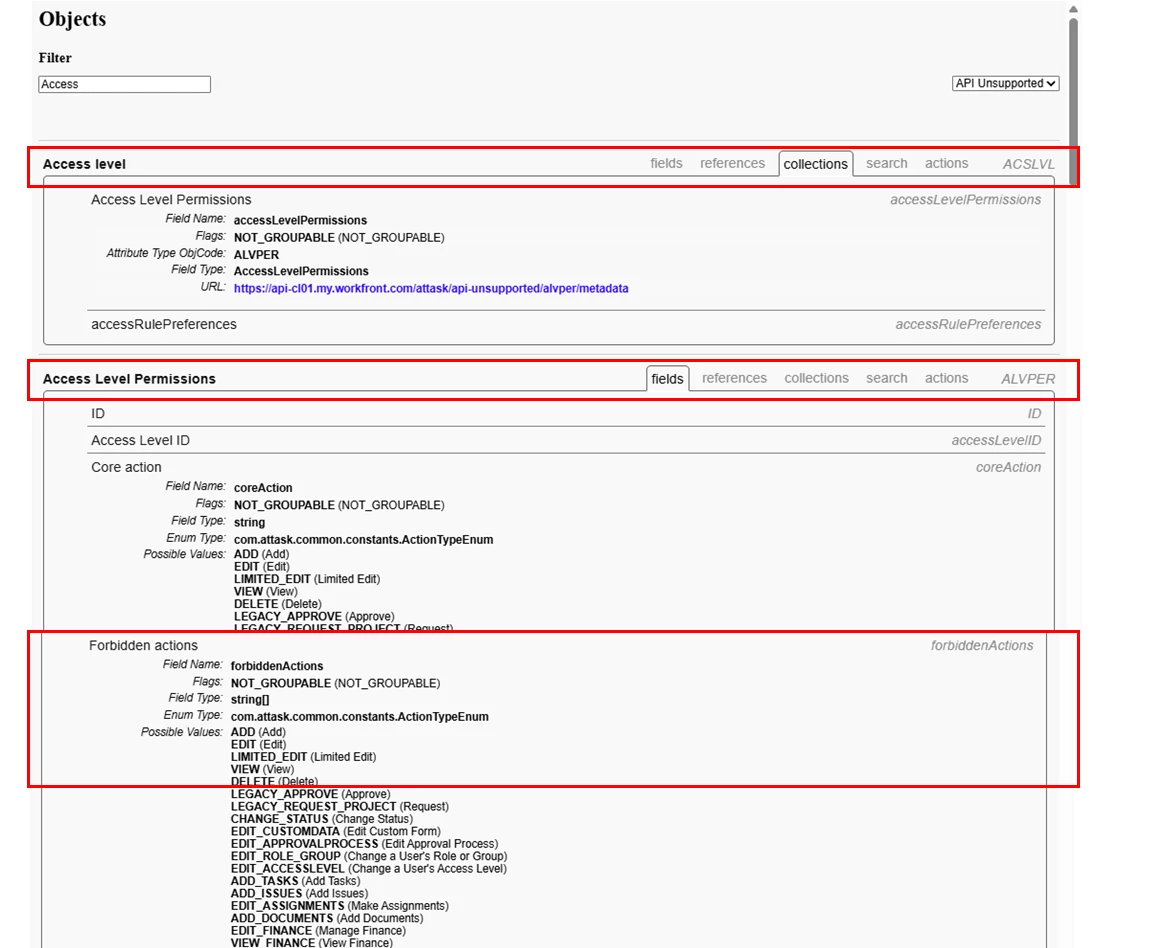 I’m running an access level report in Workfront and I’m trying to get collection data to appear on the report. Based on the API explorer I’d like to get the following fields