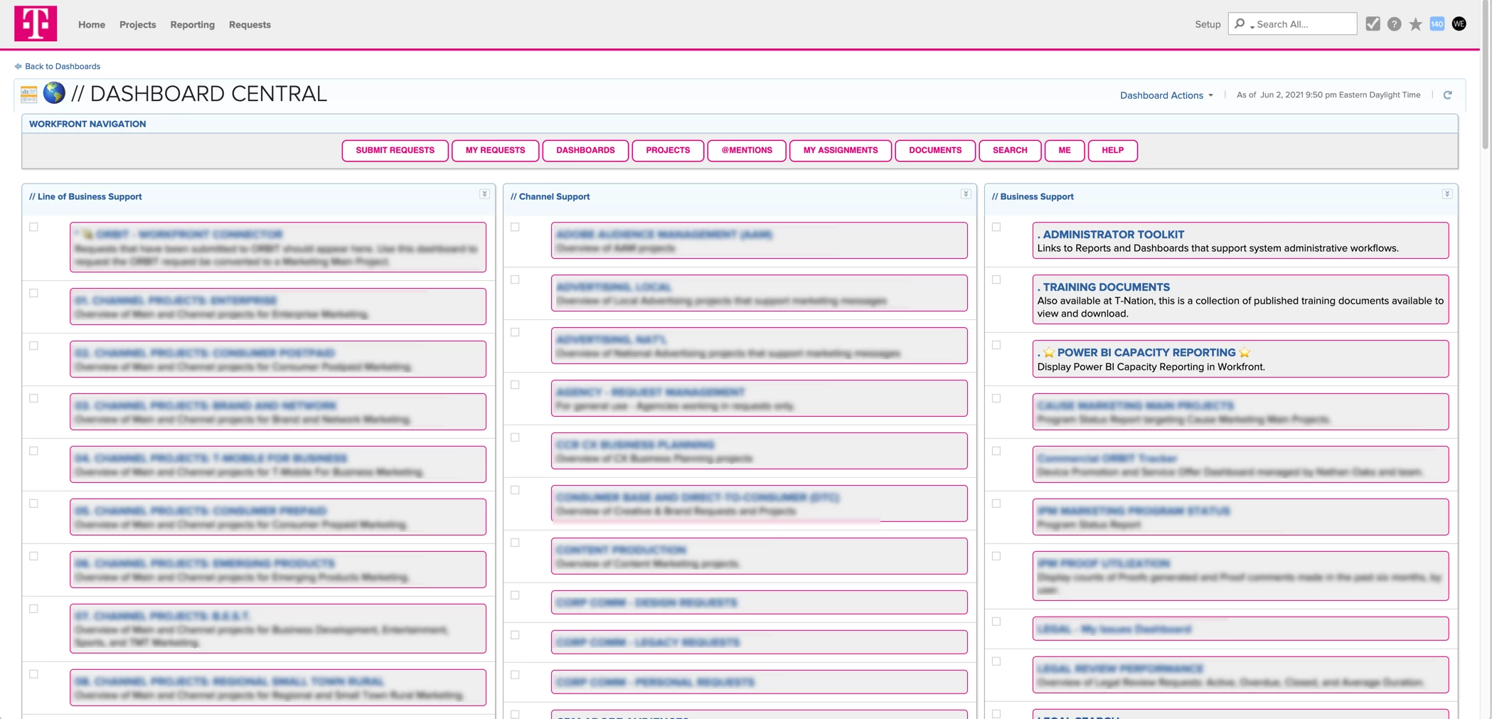 We've taken this concept and applied it all our global nav links (except Home, of course). When a user clicks on Project, Reporting, or Requests, they are served up a custom dashboard where we publish the objects that they are most likely searching for in a custom-designed dashboard that works for any user, as opposed to trying to make everyone understand the detail and nuance of navigating every different section of Workfront.