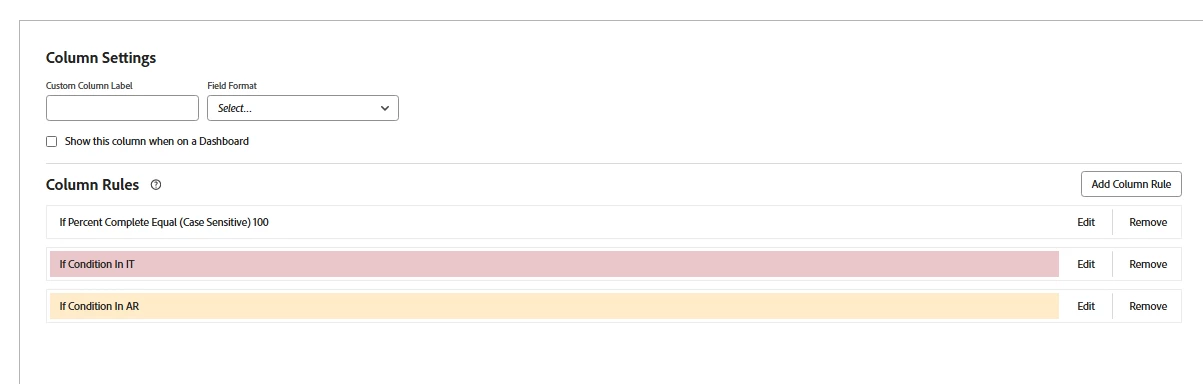 Conditional formatting based on Condition and Percent Complete