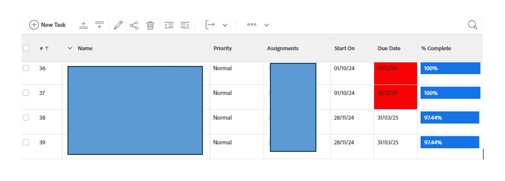 So, the one At Risk should be highlighted orange but the one In Trouble should not be highlighted red, as Percent Complete = 100.