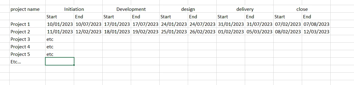 The reason you want to add this column in first, is that you'll need the names of all the milestones to create custom columns for the start and end dates.