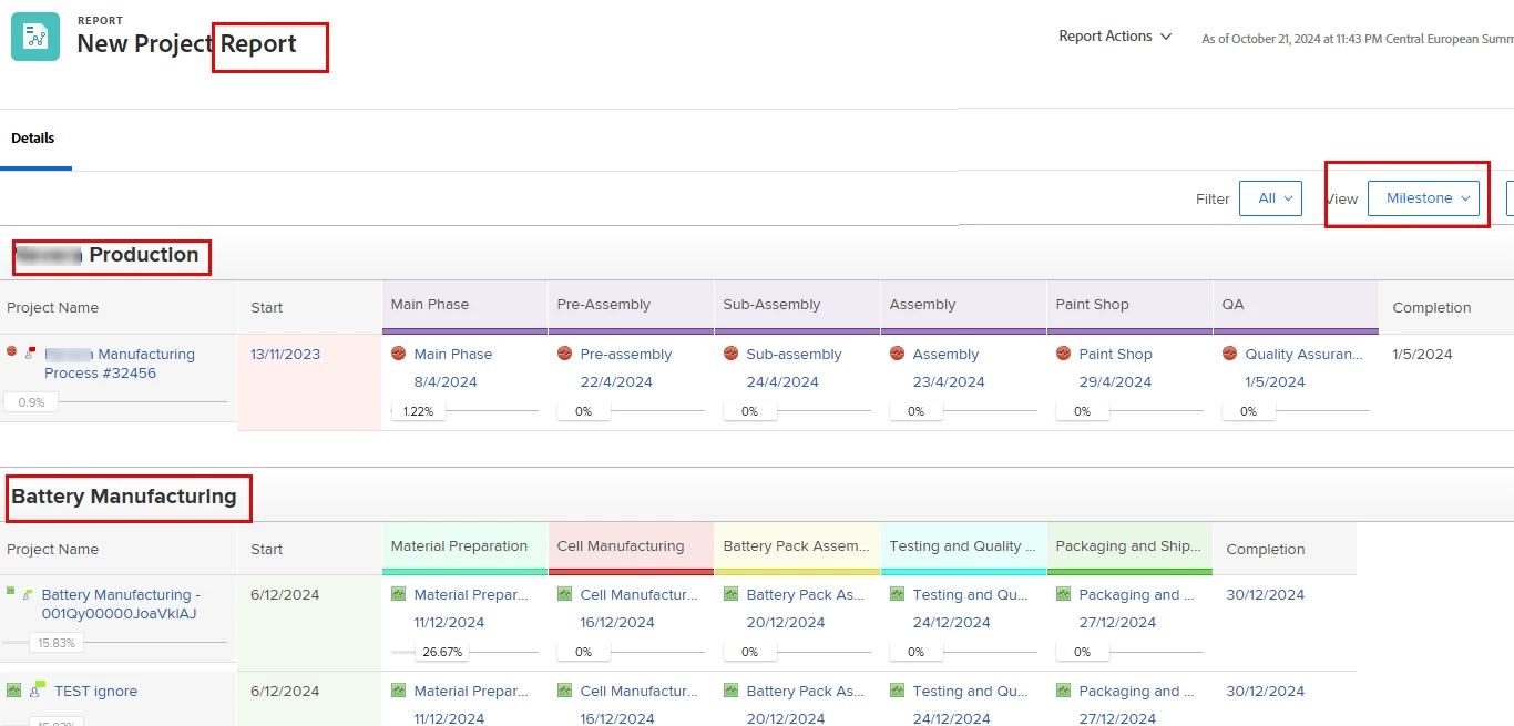 Creating Multiple Milestone reports and displaying them separately on a dashboard