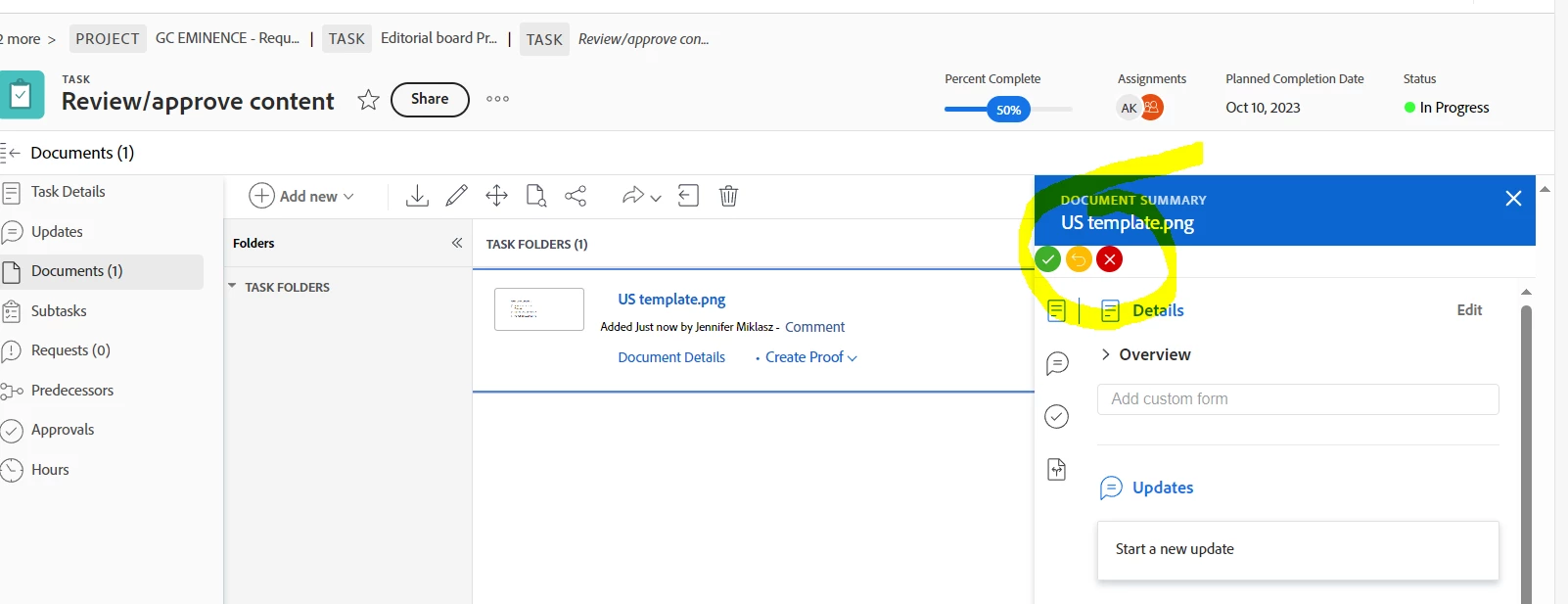 Custom button names for document approvals.