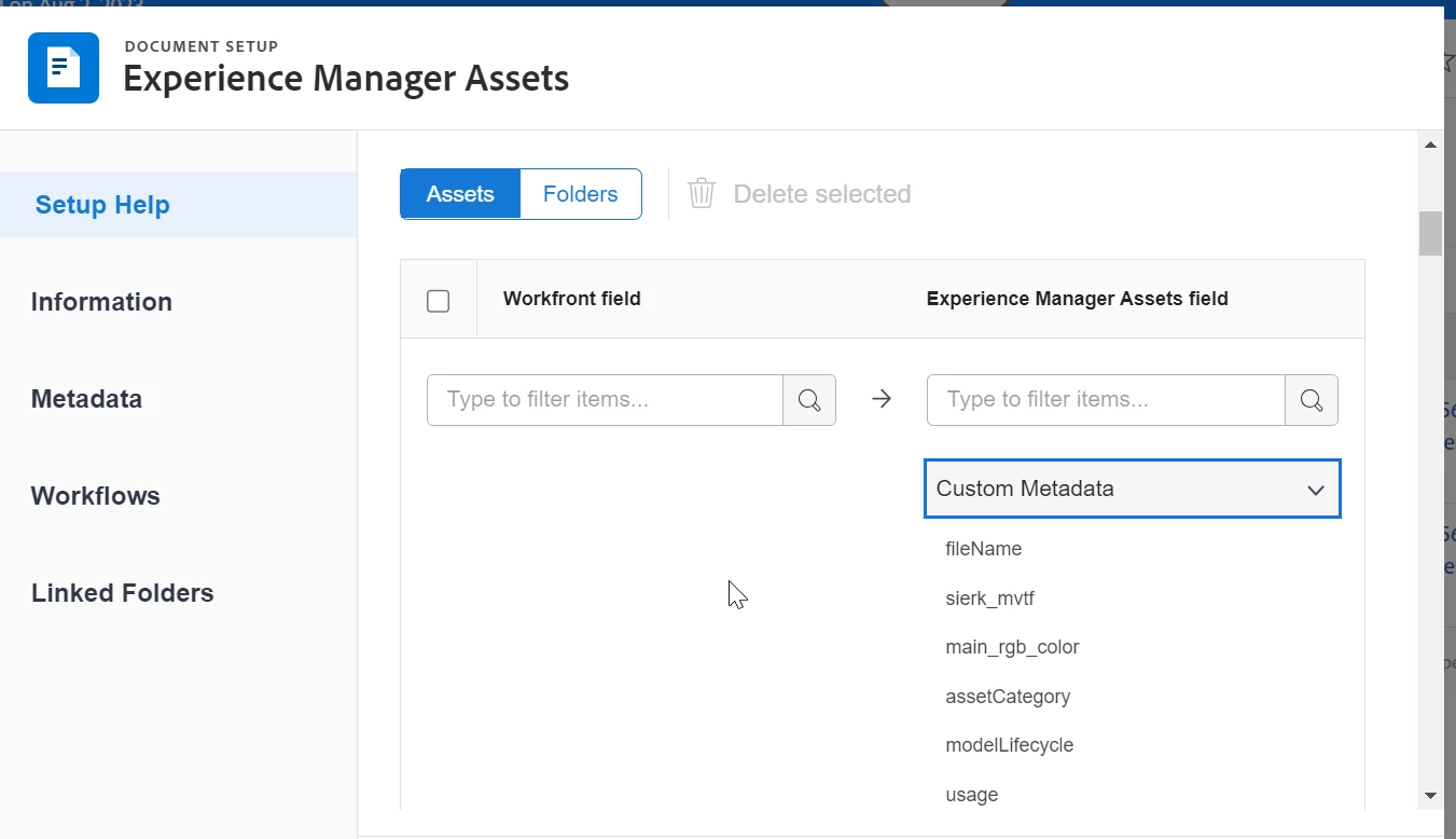 Custom metadata created on AEM is not seen on Workfront