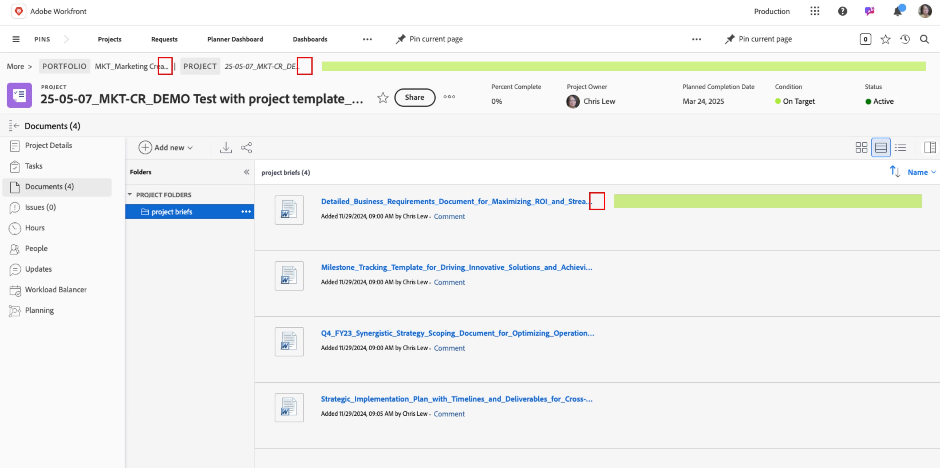 Often, the remainder of the document name contains important information that we need at a glance. Having to click on the document and then navigate to the details tab to see the full name is inefficient. Users have also noted that the truncation of the project portfolio and name causes similar issues.