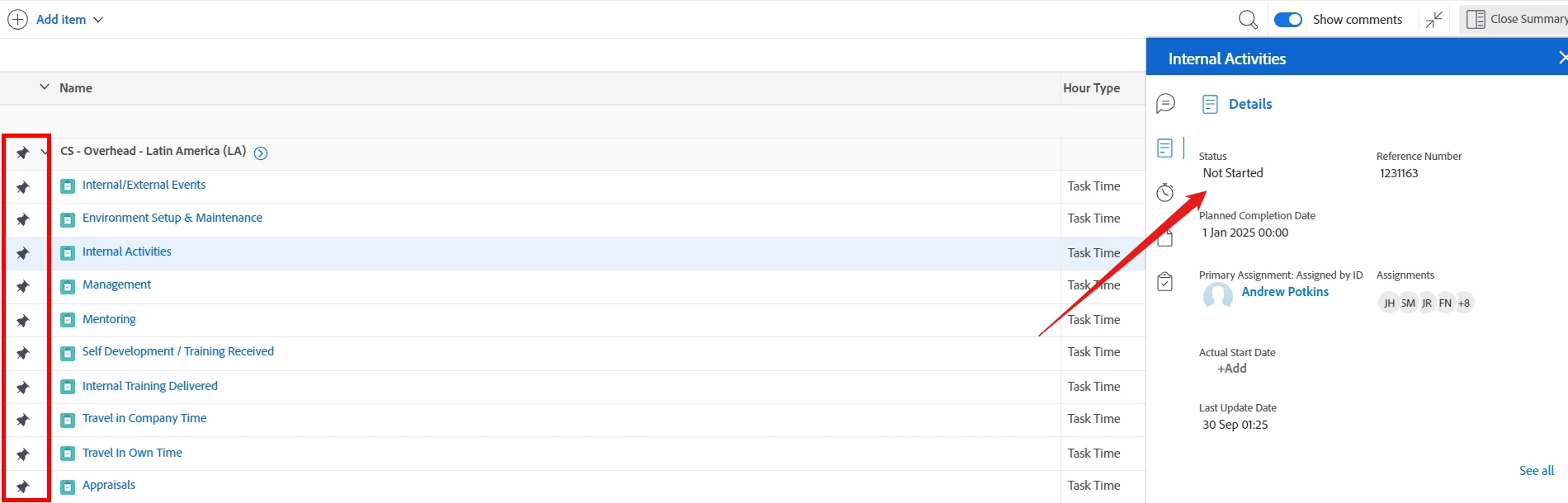 Is there a way to display task description for unassigned tasks in the summary pane? The tasks in the image below are overhead tasks, typically not assigned to specific users. Instead, we ask users to pin the tasks and input hours. However, for our 1000+ users, this is creating frustration as they are required to open each task to view its description.