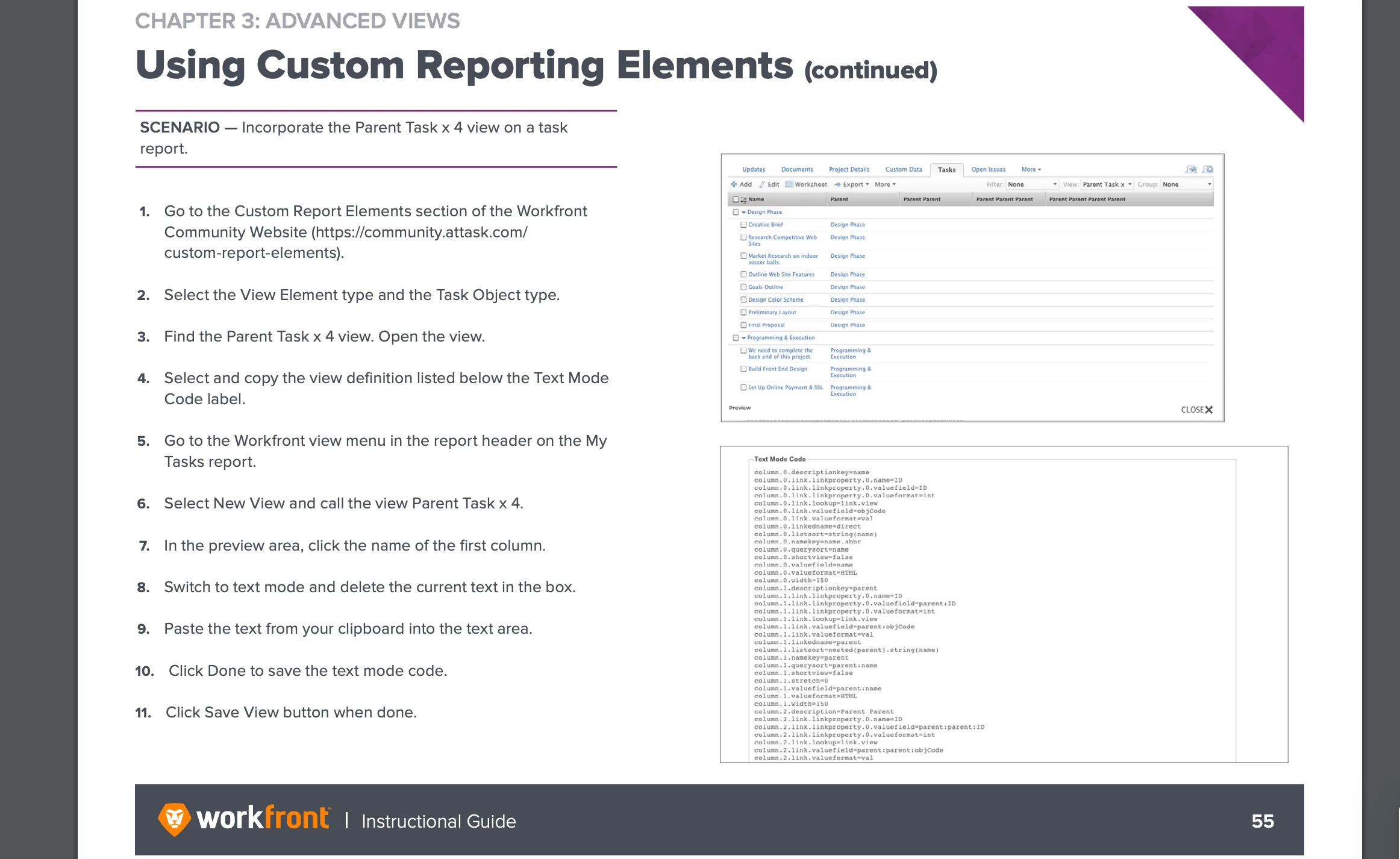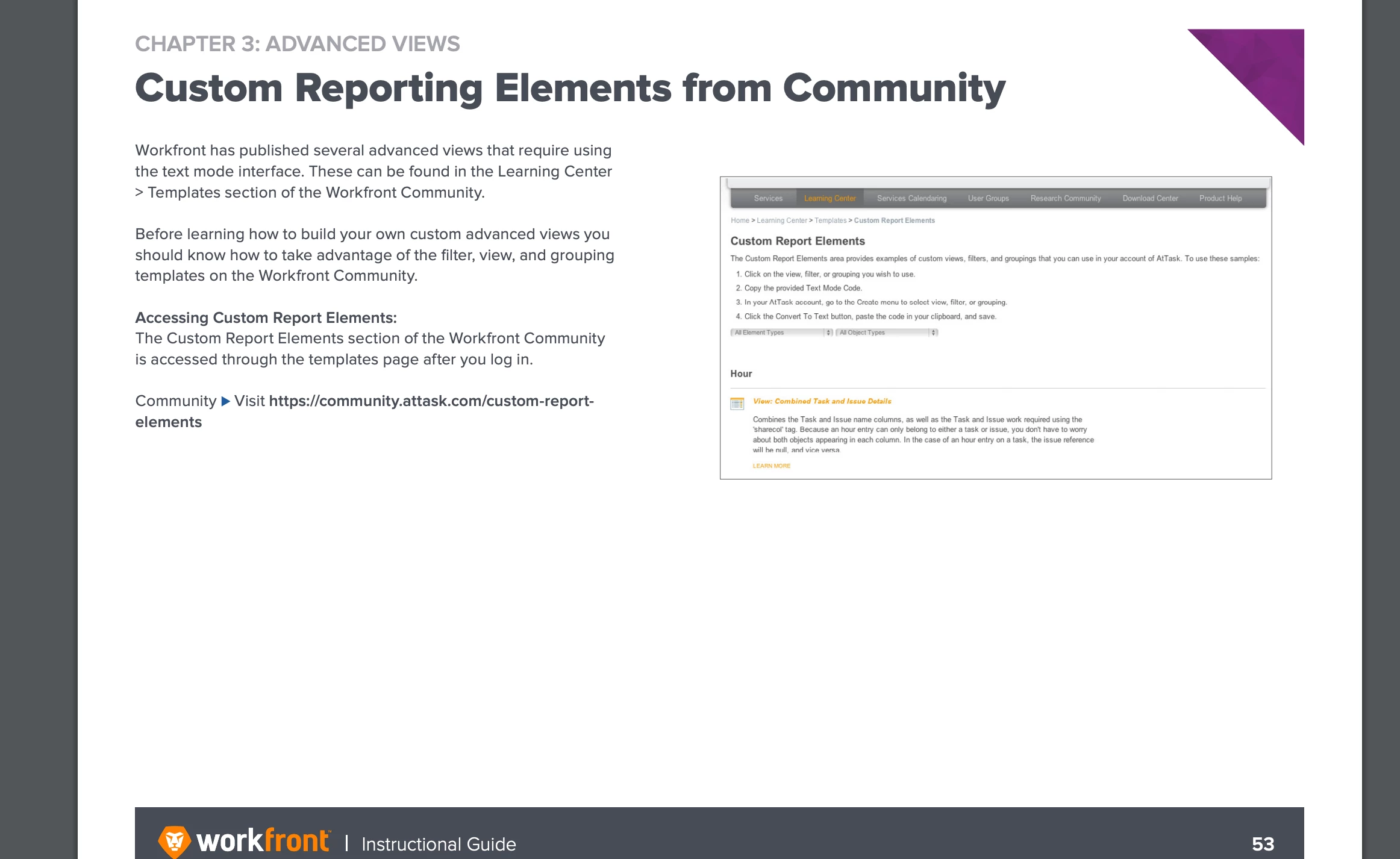 We're on the New Experience, and I'm looking at the Workfront Classic resource for Advanced Reporting: https://cdn.experience.workfront.com/Training/Guides/Workfront+Classic/Advanced+Reporting.pdf