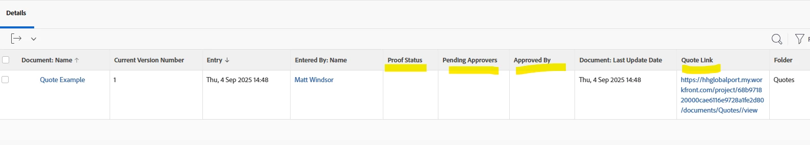I'm using document approvals but struggling to get a report created that shows the approval status / pending approver. I also need a link that will either open the document (not the document details page) or if not, a link to the folder area. My link open the folder area, but just shows a grey space without folders or options.
