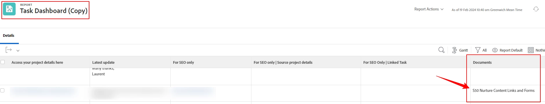 Document link within Task Report