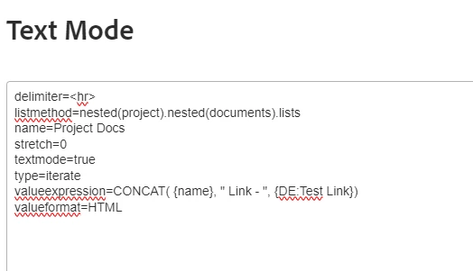 I'm using the following textmode to bring in nested documents within a project.