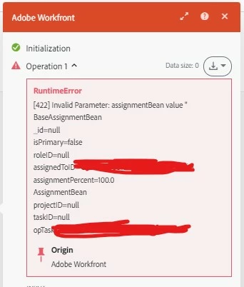 I would like to understand what this error means, [422] Invalid Parameter: assignmentBean value " BaseAssignmentBean.