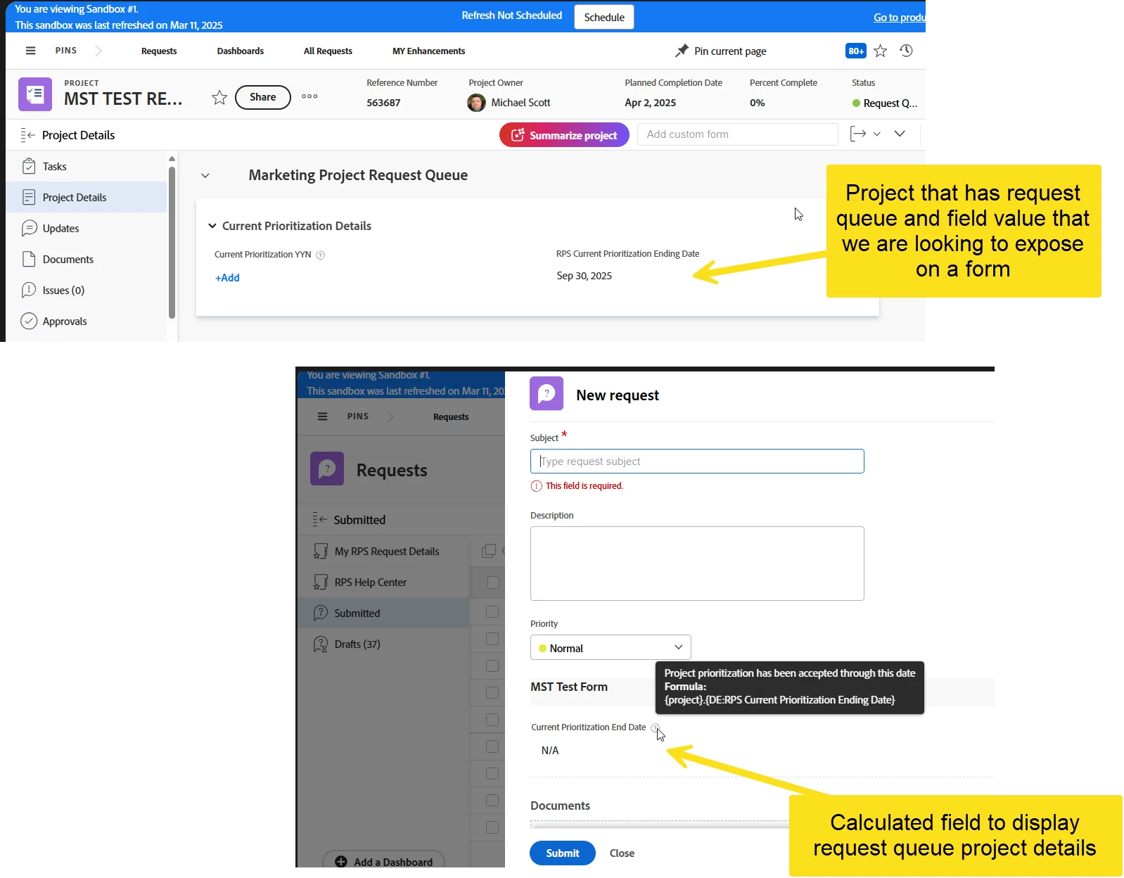 Is there a way to expose project level field on a request form? Sample scenario is that we have key dates that users need to submit project requests which changes every quarter and we want to expose this on an intake request for them for their review.