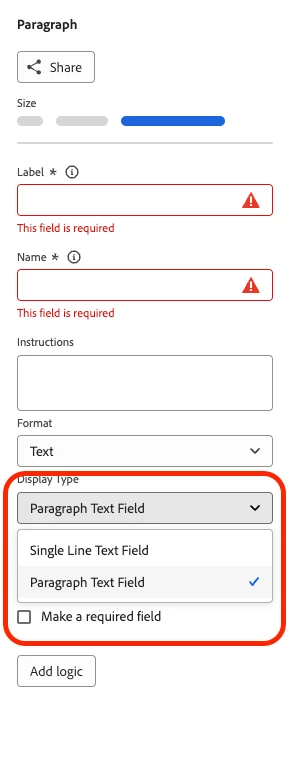 - Change the field type from Paragraph Text Field to Text Field with Formatting.