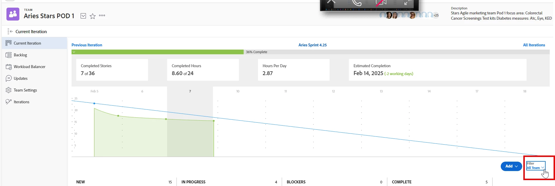 Filter by project on Scrum Team iteration view