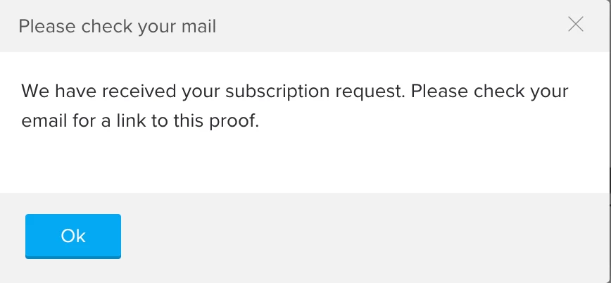 changed my setting to "no emails" but the same thing happens. The person who it is shared with gets the Sign In button at the top, when they click that they have to type in their email address. Then the window expands asking for a full name. once they click sign in they get the window saying we received your subscription request and it sends the request to the proof owner