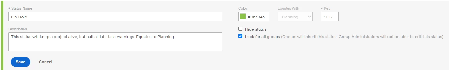 Description - We need a better solution to represent the Project Condition when a project goes On Hold.