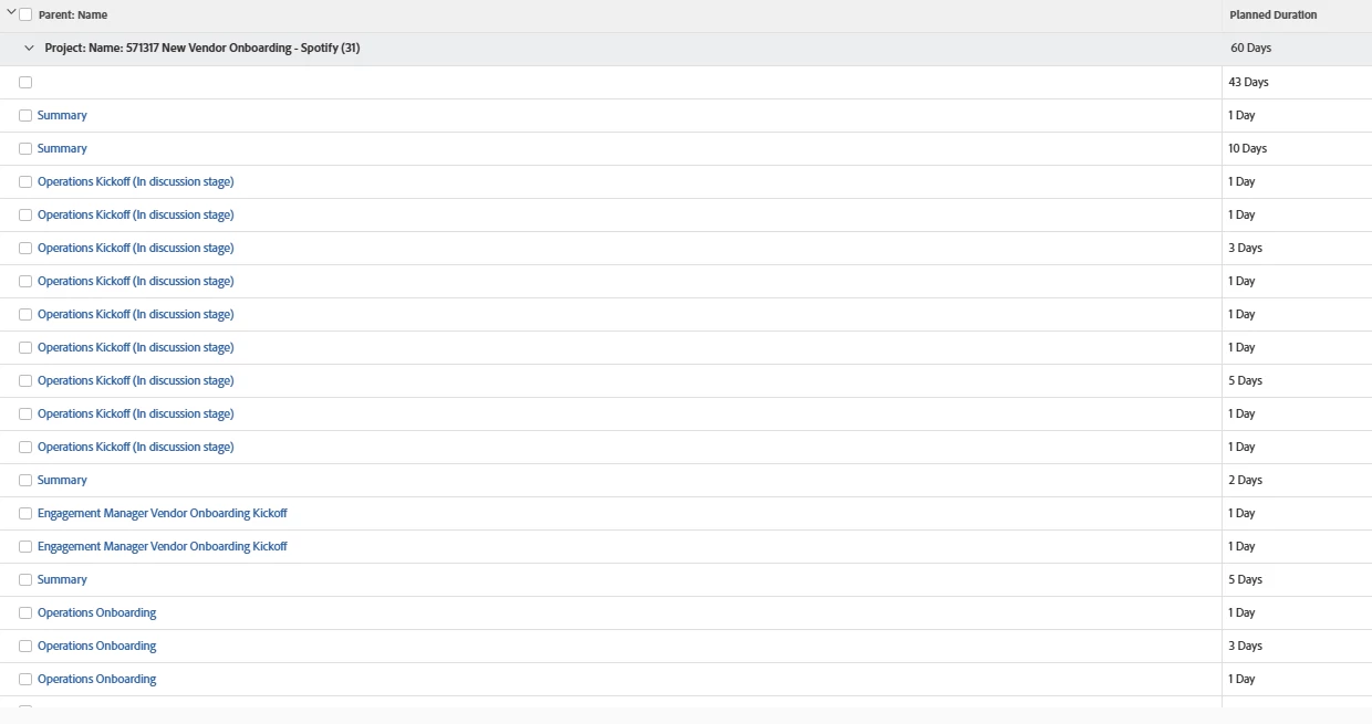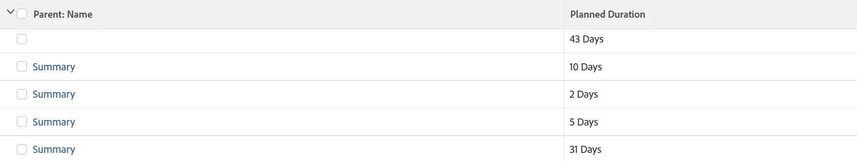 I've built a report that captures a project's Parent tasks' planned duration. While the report does capture the Parent task's name and planned duration, I want a summation of all the subtasks' planned duration; instead, I get a duplicate line item named with the parent task.