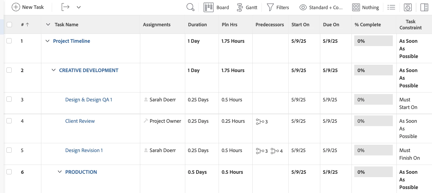 How would you like the feature to work - We would like to assign a particular designer to tasks in a task template so that when a project is opened and the task template is attached, the tasks are pre-populated. If the tasks are not needed, the owner can delete the tasks, but if revisions are required, we want to make sure those tasks are assigned and made active once the preceding tasks are marked complete.