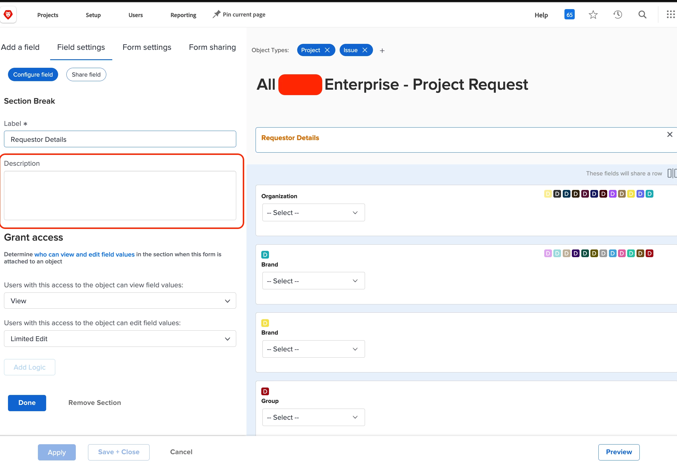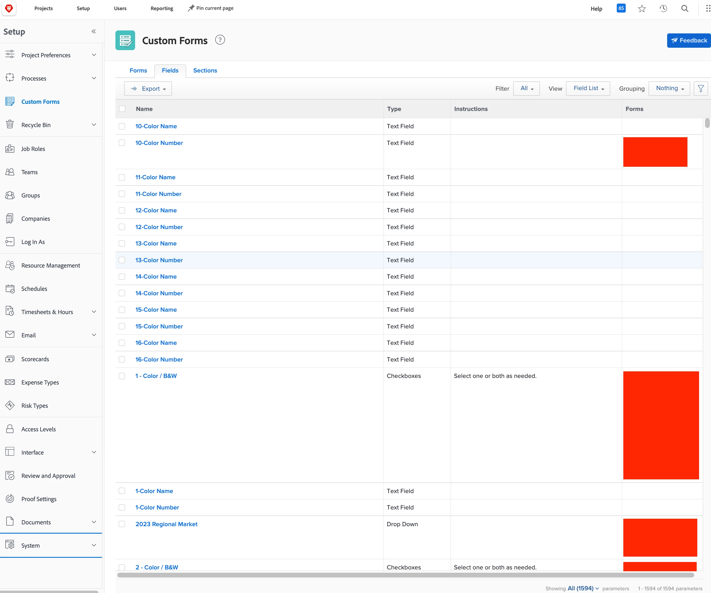 I have a Description text field that is used on a specific custom form that I want to edit and make a required field. I am the global admin, so I should have this right, but I am unable to find the means of doing this. Our company did work with a consultancy group to help with building out this form and streamlining some things, but that shouldn't matter. And when I look at other fields, I am unable to see a way to do much more than a basic edit of them. According to this link from last October, it should be as easy as going to Settings>Account Settings> then opening the Custom Fields tab. However, I am unable to find any settings or account settings options in my backend. In the screenshot provided, this is the extent of my options (I didn't expand the ones that could be, but Account Settings is not in any of them).