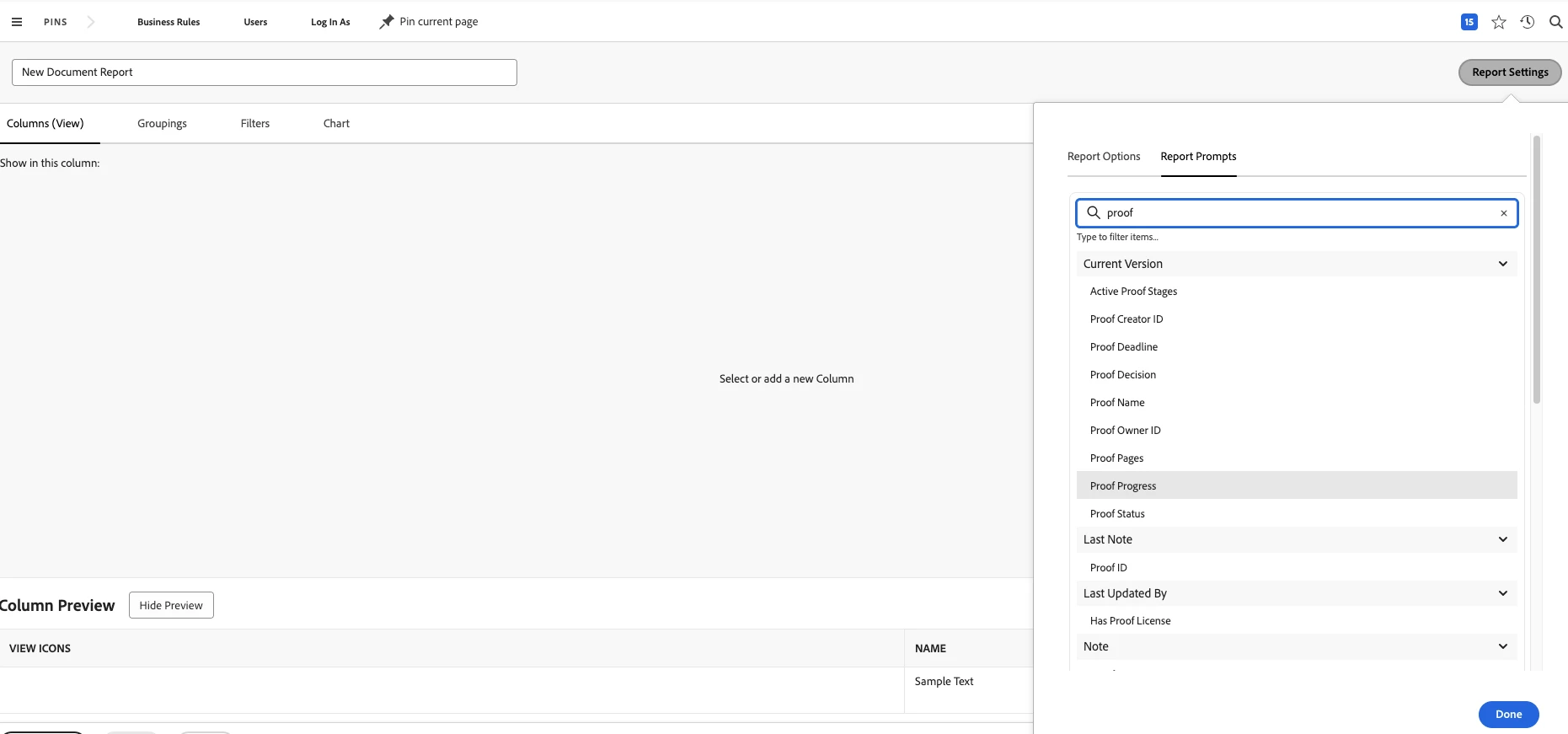 How can you access Proof ID in the document report to add it into prompts