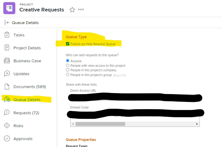 You actually have to create a "Project" and select the option "Publish as Help Request" in the Queue Details section. Not sure if you are using the new experience but the screen shot below is where to find it. (One thing to mention is the "Queue Details Section" may not be available depending on your Layout Template and those can be found/edited in the Set Up section. Good Luck! (Ignore my horrible screen shot, I was rushing 😅 )