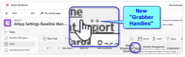 In case you missed the memo (as I might have), the way to to dynamically rearrange columns in a Workfront Report or view has changed a bit: on hover, there are new "Grabber Handles" (similar to those used to re-order custom tabs on certain left menus), which can be a bit tricky to spot, depending on how the column header text lands. Now that I'm aware of them, I know where to look and click (typically in Chrome)...but I've also heard reports that they don't always respond, and (in a worst case) can actually cause the desired column to disappear completely from the view -- including the definition.