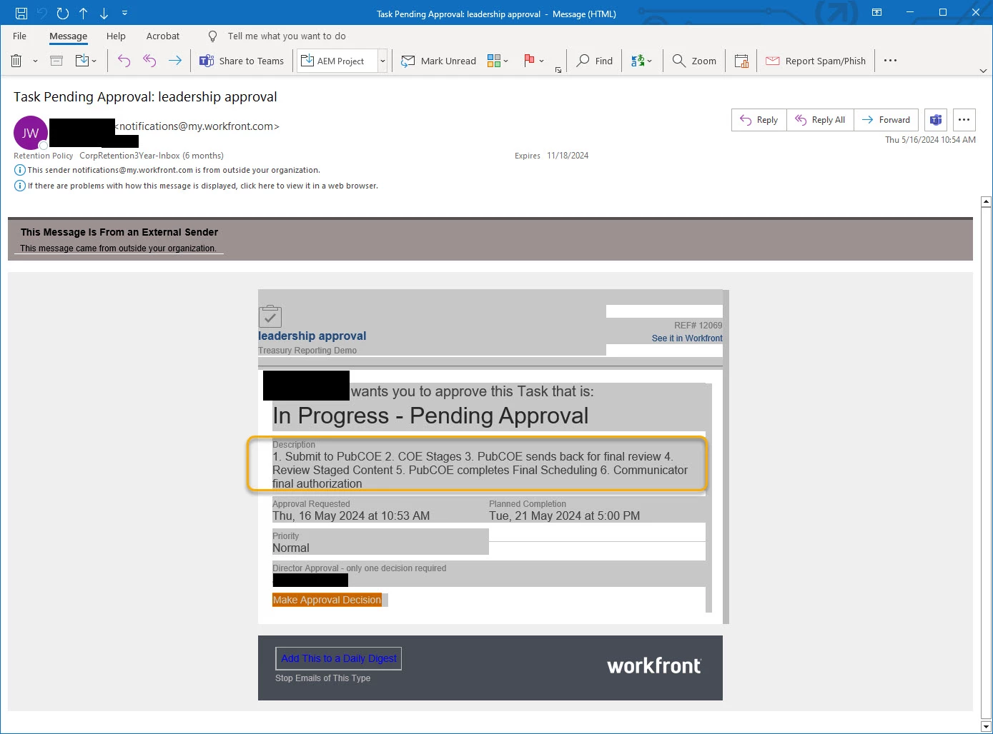 For the notification "Task Pending Approval: xyz", where could I change the Description?