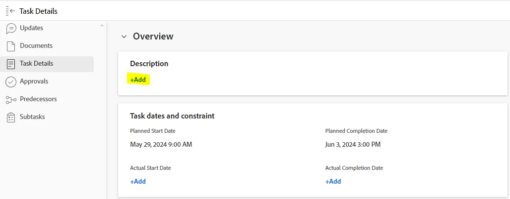 You can find the task description located in the task details.  It is here where you can edit it.  See screenshot for a visual.