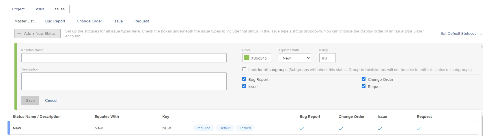Also, you mentioned that your custom statuses are hidden from the dropdown menu for your end users -- Does that mean that users also can't see the statuses when looking at Issues on a project? For example, if our PMO director wanted to see the status of all open Requests on our request queue project under the Issues page, would she be unable to see the status of issues that are using a custom Status? (Hope that makes sense)