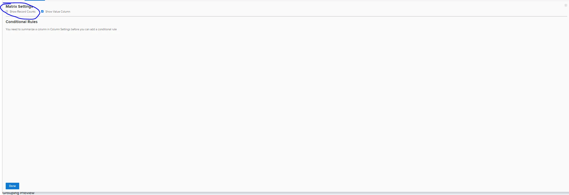 Hi Jez, I suggest you add the Planned Hours column to the view of your report and (here’s the trick) choose to “sum” that column, then see if “sum” is then be available in addition to Record Count on the Matrix (as is the case for charts). Regards, Doug