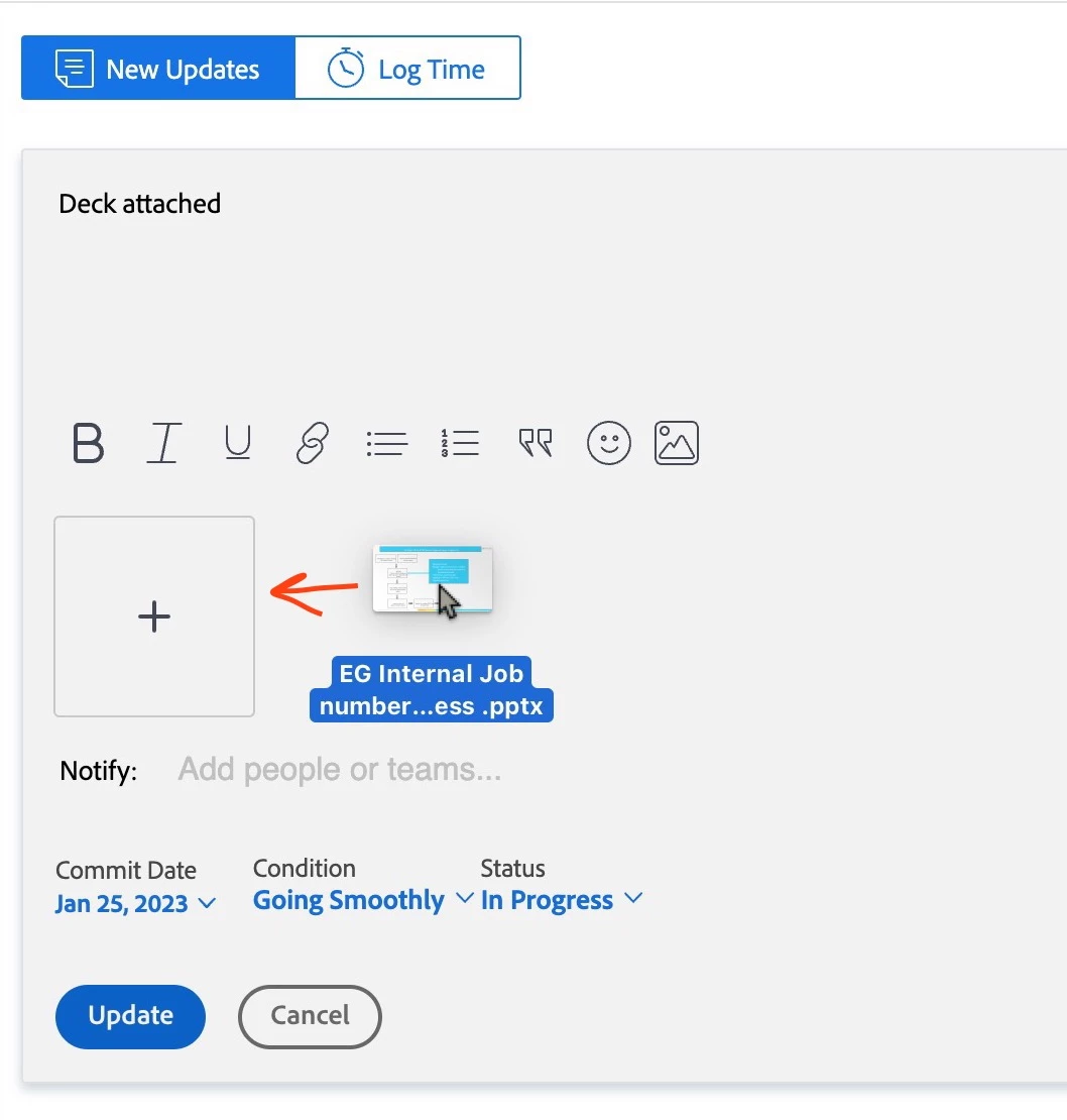 We would like to request all user are able to drag and drop screenshot's / documents into updates /comments