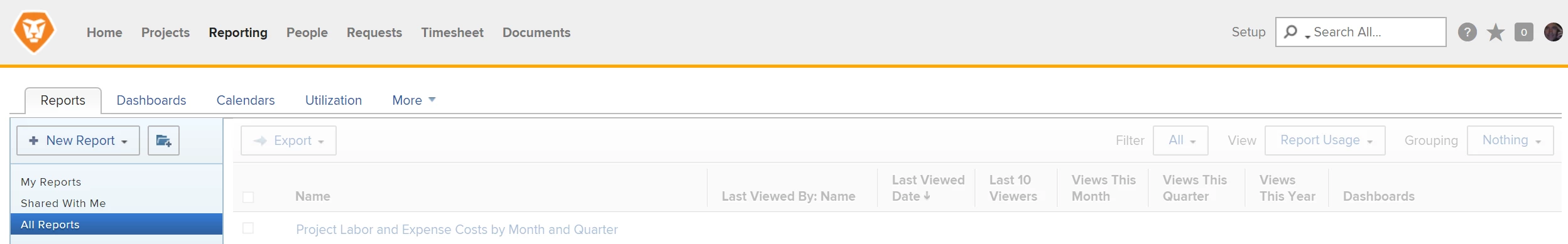 A while back, Workfront introduced the Report Usage view, as below, which has several cool columns in it, including Last Viewed By: Name, Last Viewed Date, Last 10 Viewers, and Views this Month / Quarter / Year. As I recall, the main usecase was to help decide which Reports are (still) in use, so that those that are not could be periodically purged.