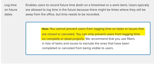 Is there a way not to allow time to be logged to tasks that are marked as complete.
