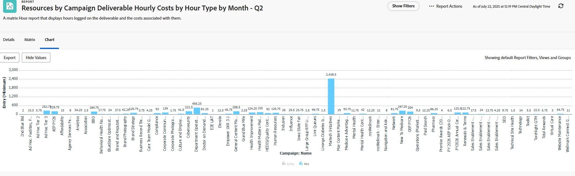 Why is this feature important to you - to report on top campaigns/initiatives being worked on by resource hours; provides pulse check on alignment to priorities