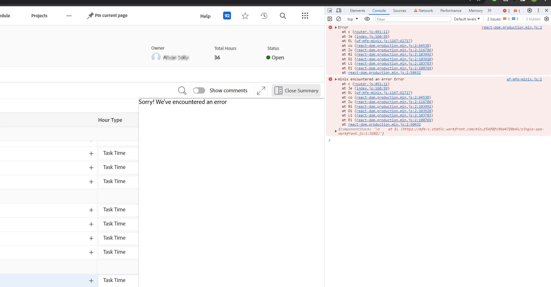 Cannot open summary for a task