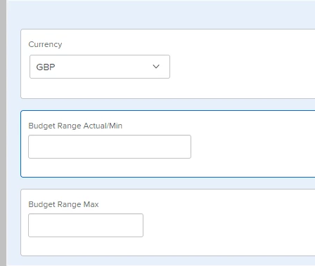 The user can define the currency, e.g. USD, but the two Budget fields then default and show as GBP. Is there a way to make the Budget fields reference the Currency Test field to pull in the correct currency?