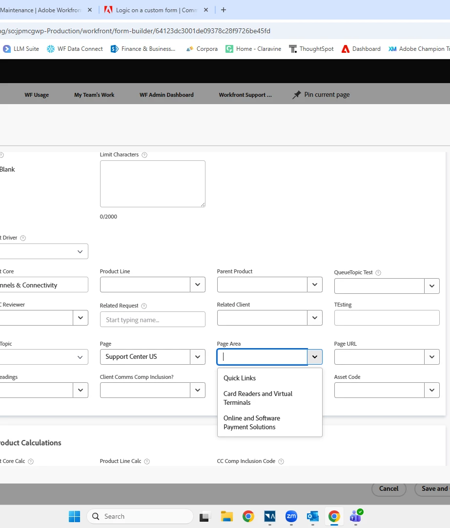 If I chose Product Support US instead in the first field, you can see how options changed: