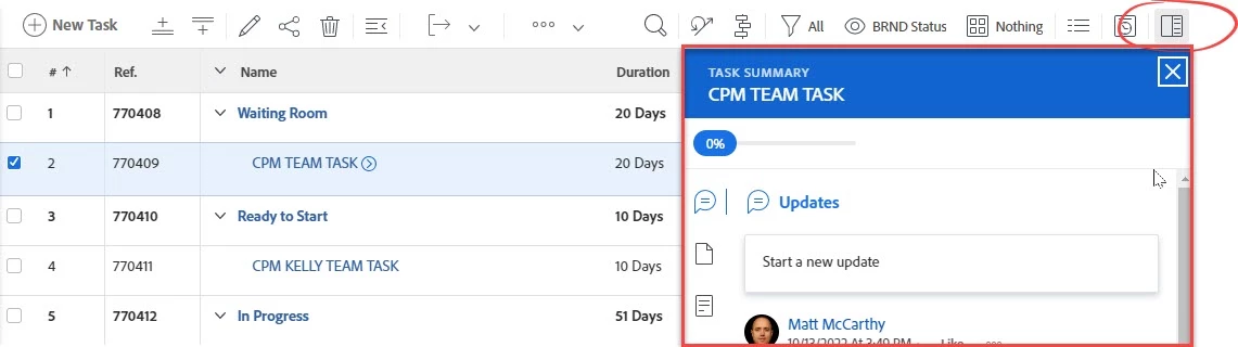 Description - The Task Summary is available when looking at tasks in a project and is really useful for allowing team members to comment and interact with tasks. It would be great if this feature was available in reports. This way you could get this useful feature when managing work across projects.