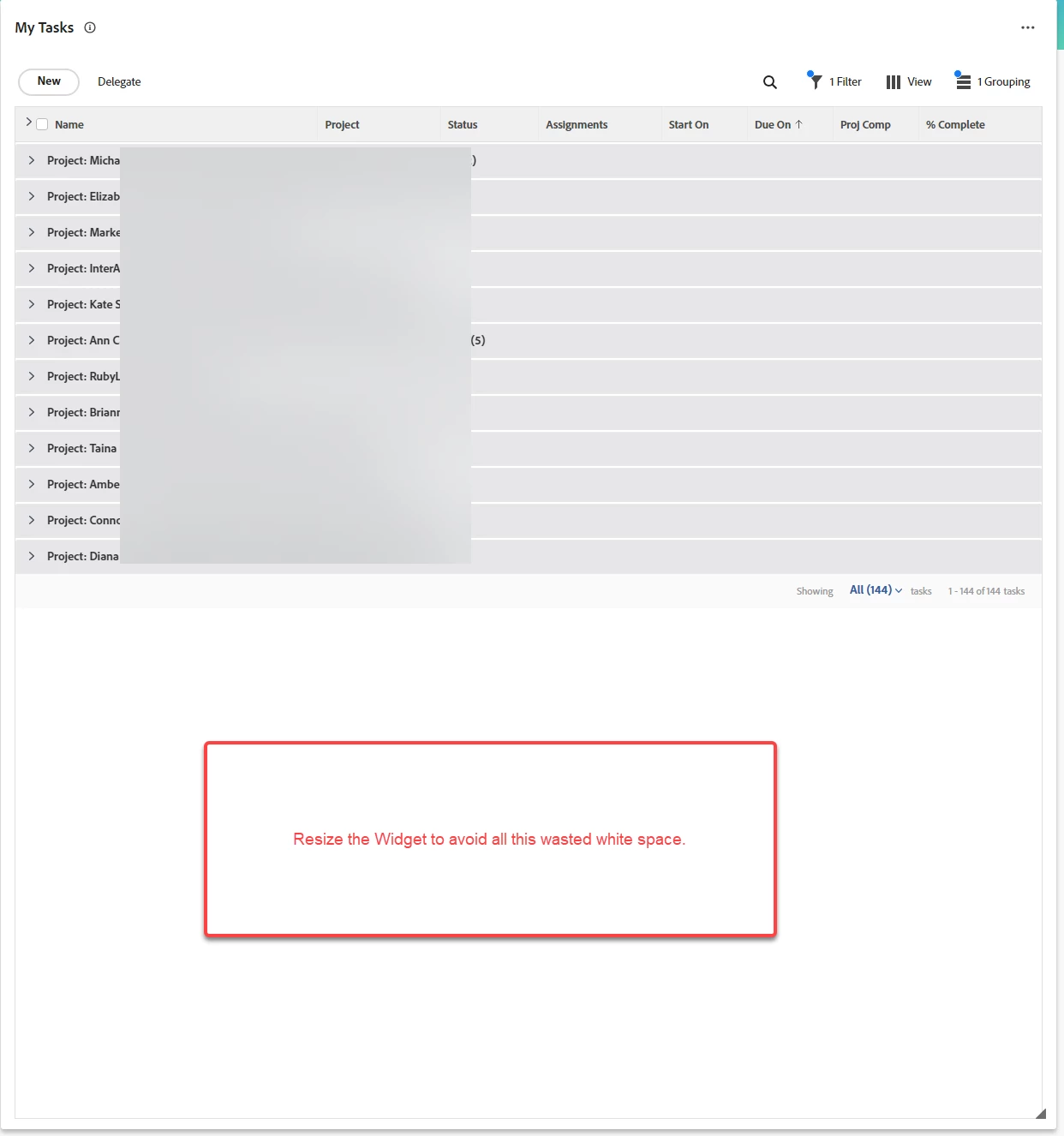 Current Behaviour - The My Tasks widget defaults to "Showing" 25 and all projects are expanded and the widget window doesn't resize after I collapse them. I do this multiple times a day.